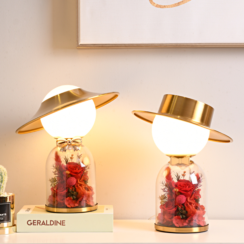 Couples immortal flower wedding gifts newlywed room bedroom bedside romantic modern creative dowry changming table lamp pair