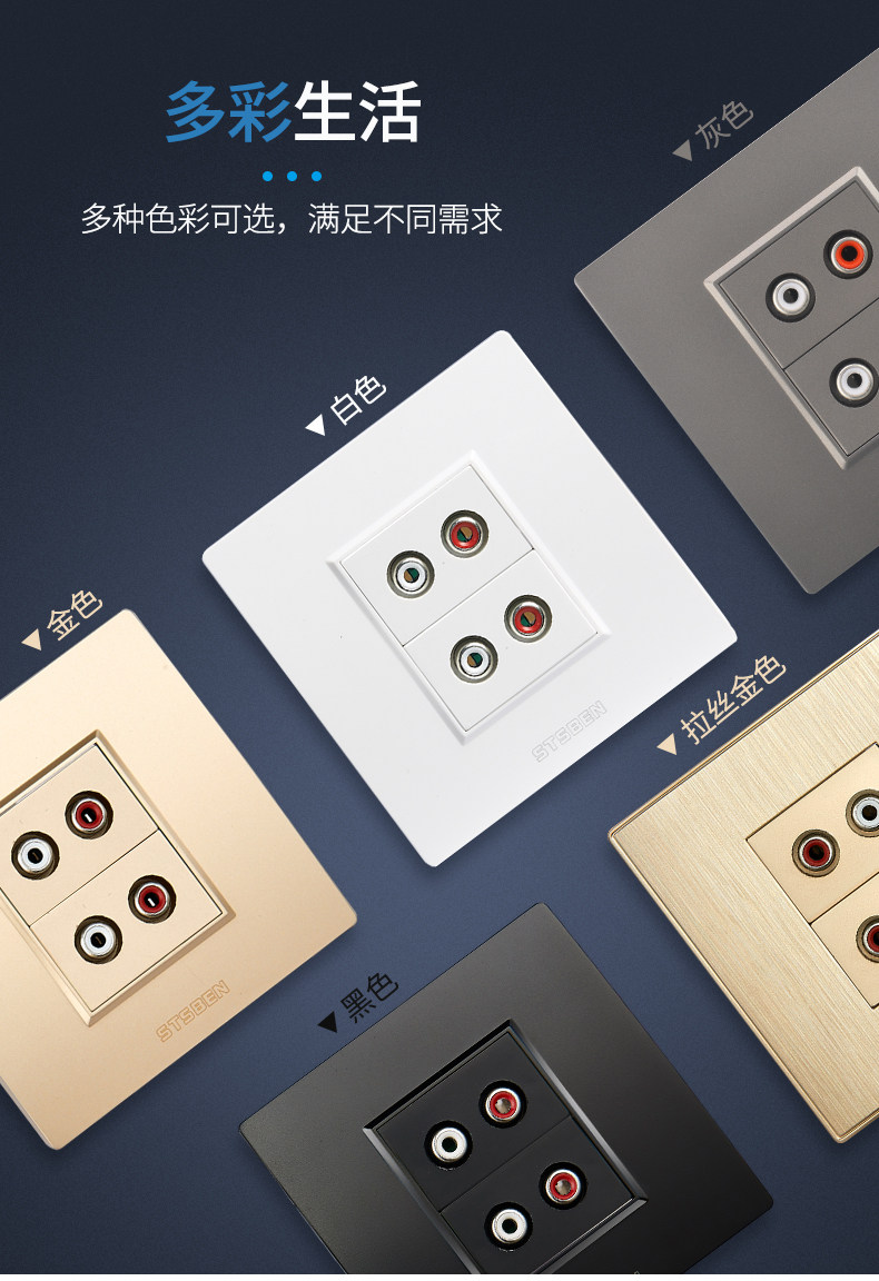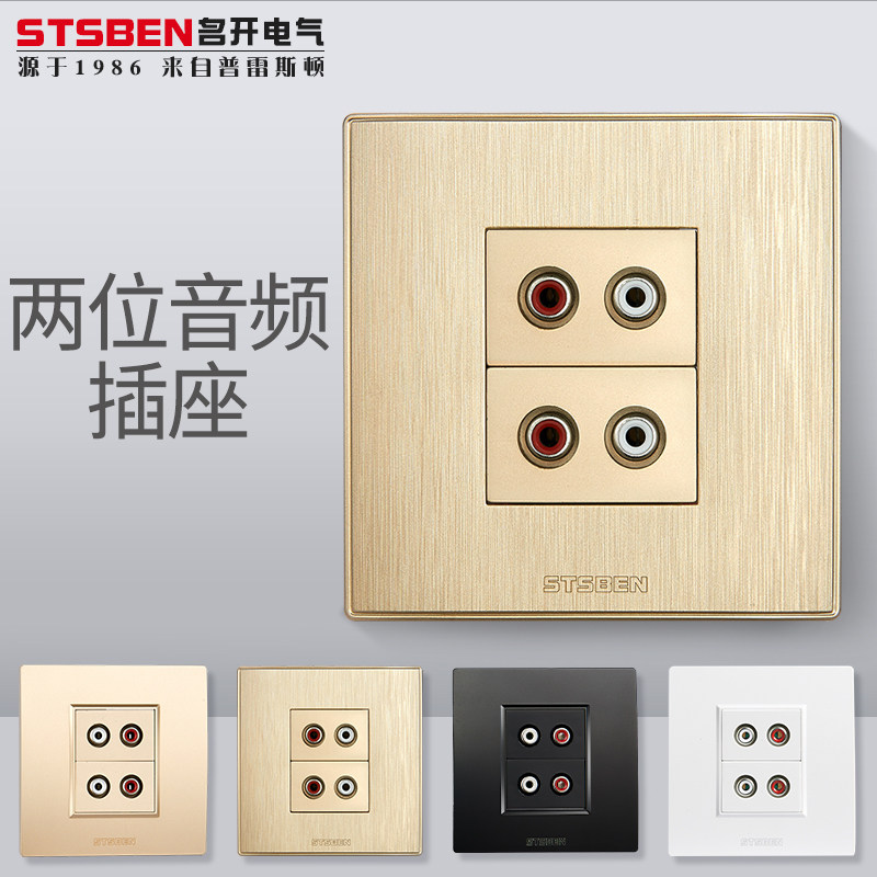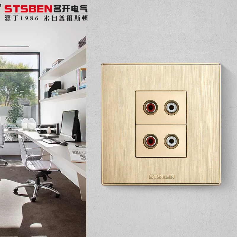Famous Open Electrical 86 Type Wall Concealed AV Audio Panel Wire Drawing Golden Two 6 5 Lotus Audio Socket