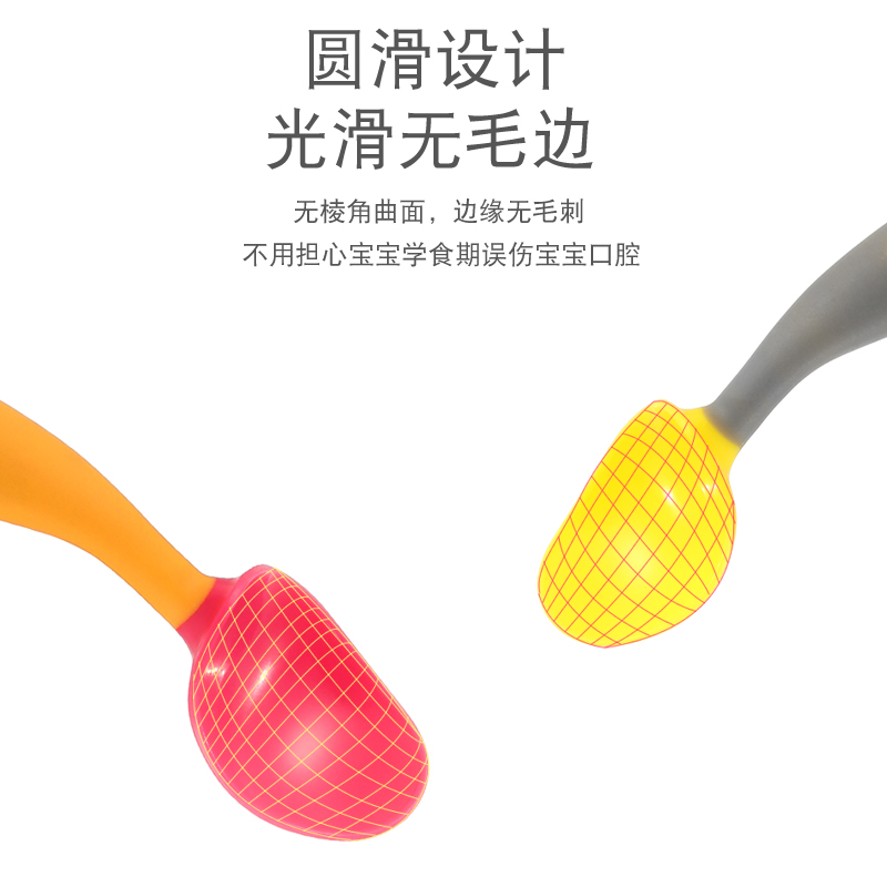 Baby spoon Baby learn to eat training spoon fork set Baby children's tableware food bowl Elbow spoon soft 2