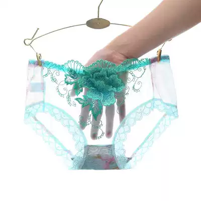 Full transparent lace panties women's thin mesh sexy low waist seamless blue purple white embroidered girl briefs