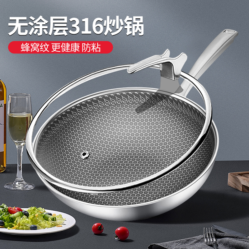 316 stainless steel frying pan non-stick pot household uncoated gas stove induction cooker special kitchen frying pan