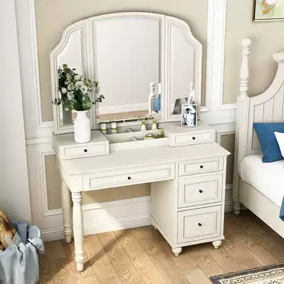 American dressing table Bedroom small apartment European-style solid wood desk integrated storage cabinet White dressing table simple and modern
