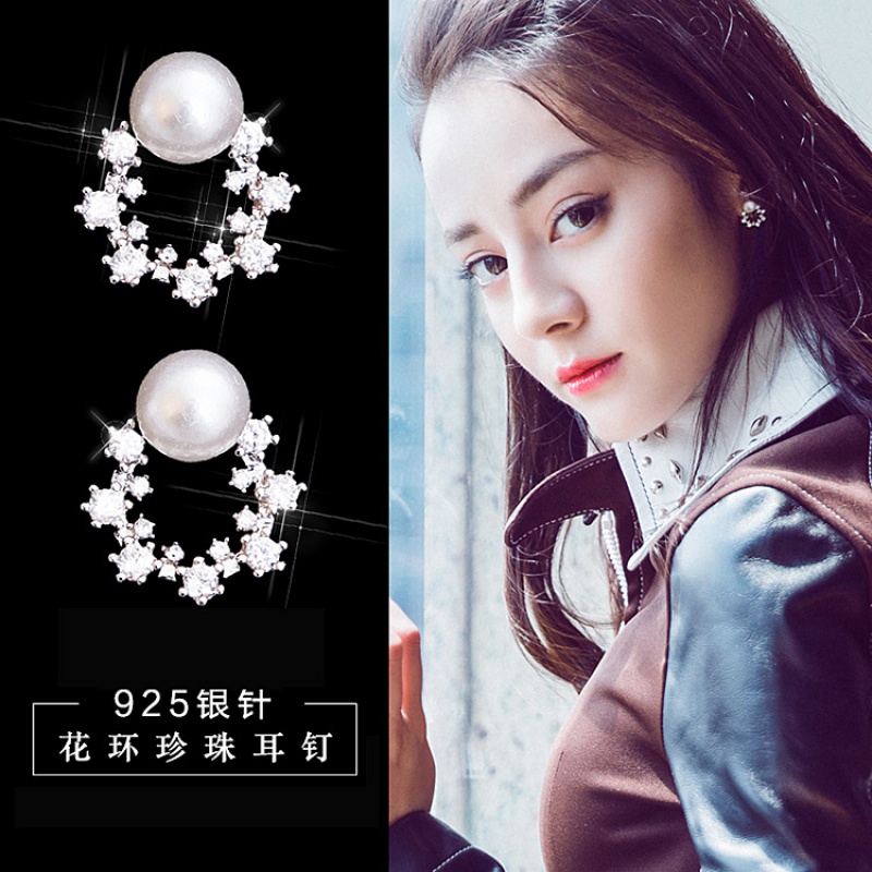 Silver needle pearl earrings female temperament simple personality wild circle zircon sweet earrings Korean high-end earrings