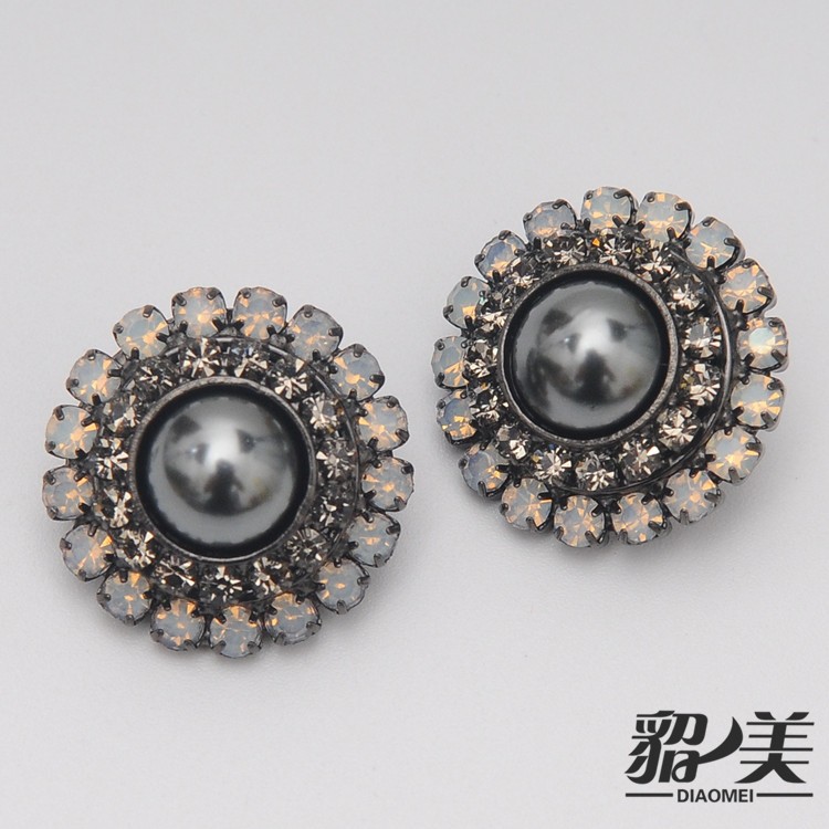 Small fragrance Wind button Coat Jacket Pearl Buckle Woman Snowspun Shirt Sweater Pearl Buckle Super Shiny Water Drill Metal