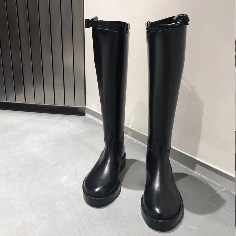 ANN riding boots women's high barrel autumn and winter new boots leather boots single boots plus velvet British long barrel Military boots horse boots boots