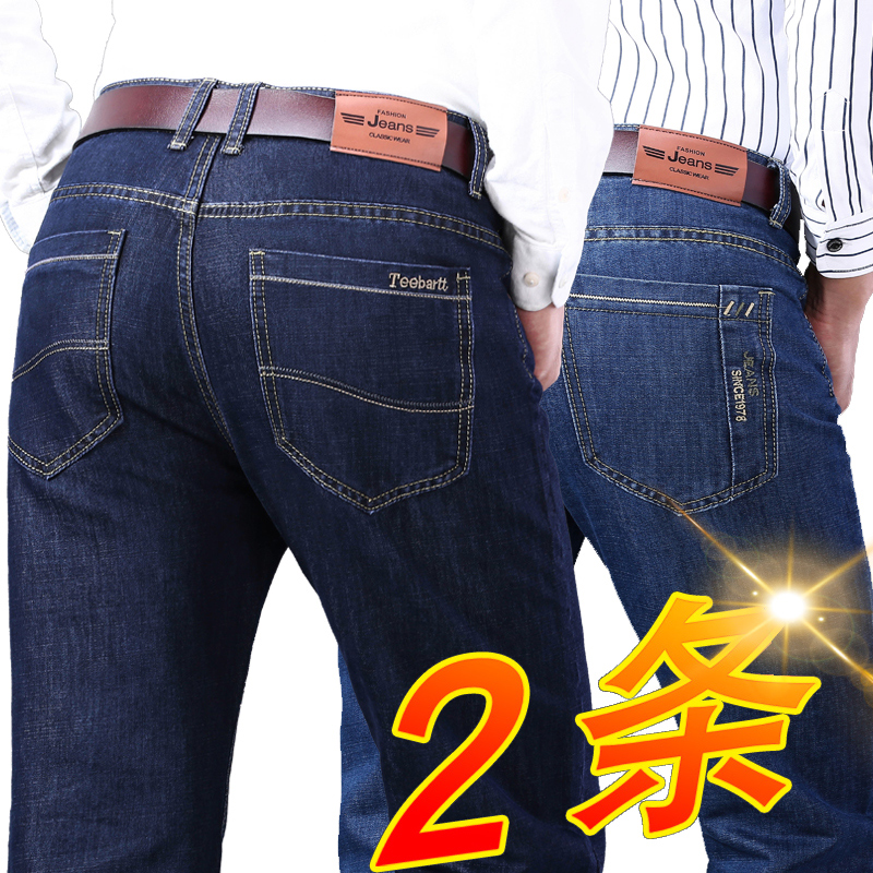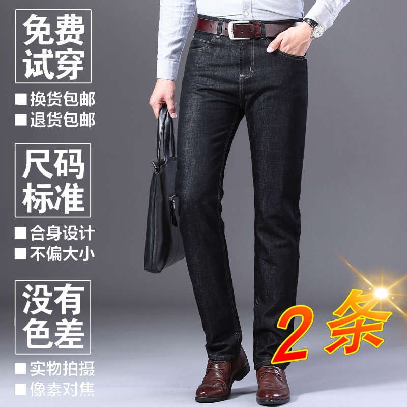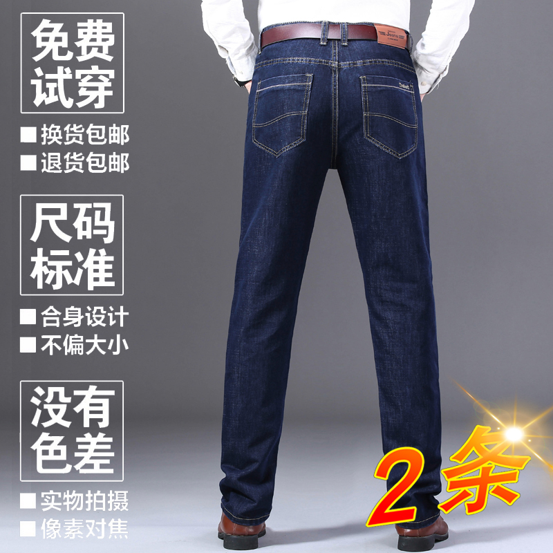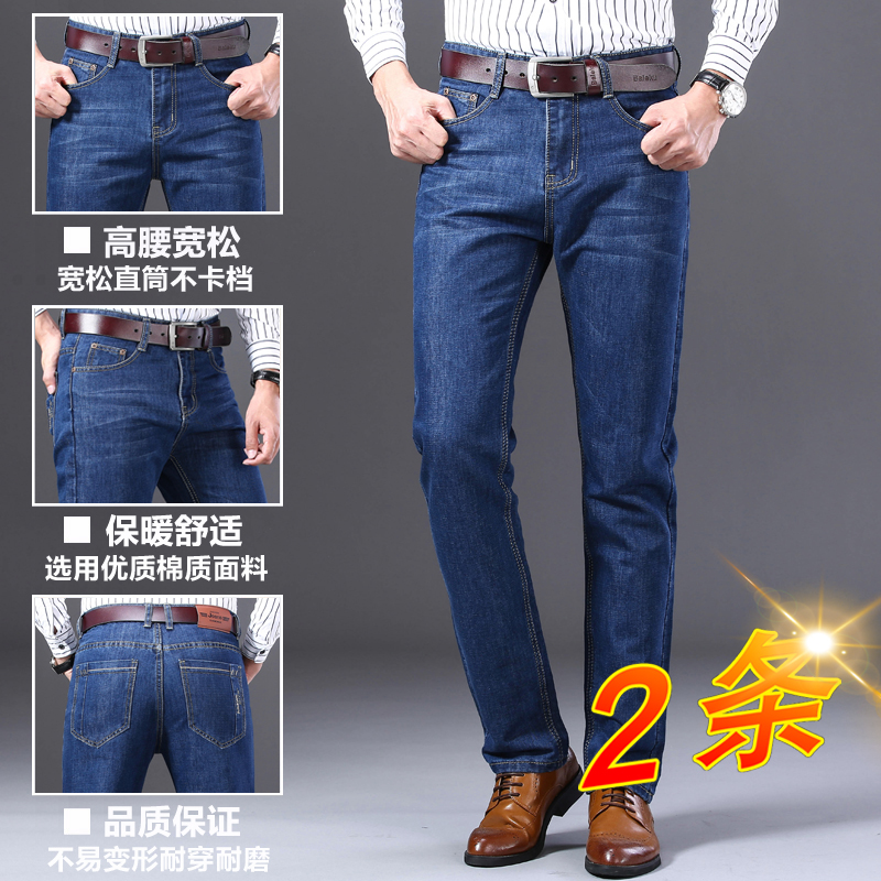 2021 autumn and winter men's jeans men plus velvet straight tube loose middle-aged dad high waist casual long pants men's pants