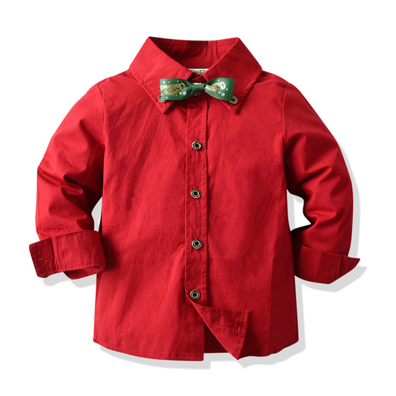 Boys shirt long sleeve baby red shirt Children's performance suit 2020 new children's clothing little boy shirt pure cotton