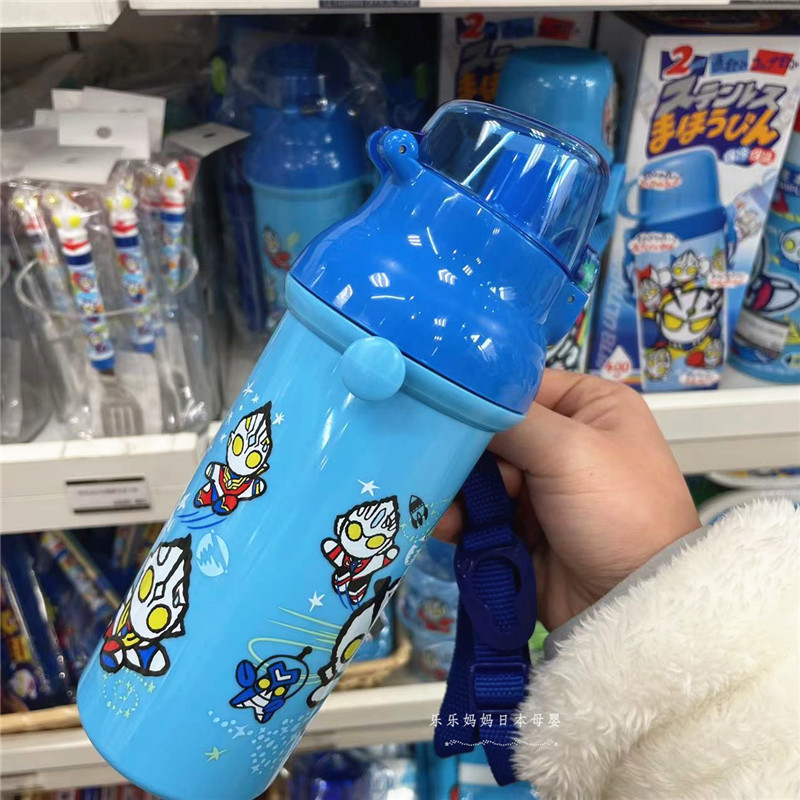 Japan native M78 Ottmann special cabinet Salty Egg Superman Cartoon Straight Drinking Plastic Kettle Braces for baby bag 480ml genuine