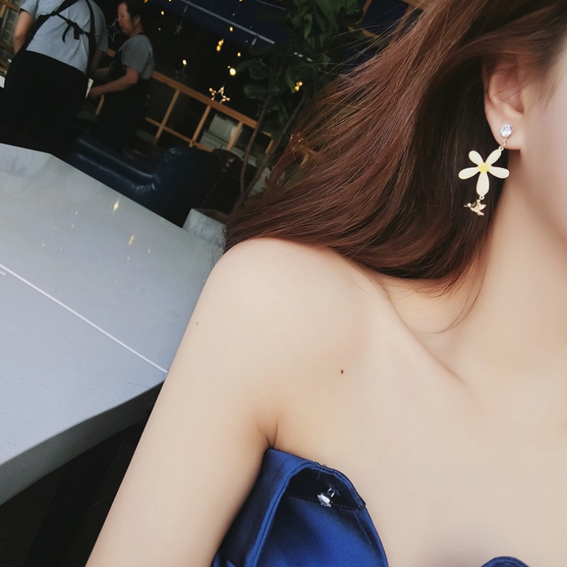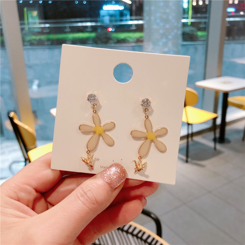 (8 Fold Clear Cabin) Yellow Flowers Net Red Cute Small Earrings Woman New Temperament Earshot Silver Needle Earshot Woman
