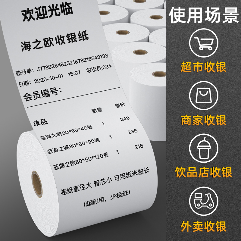 57x40 Thermo-Sensitive Cashier Printing Paper Beauty Group Takeaway Supermarket Small Ticket Paper Small Roll Cashier Silver Paper 58mm Kitchen KTV Paper-Taobao