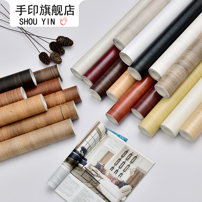 Log color wood grain wallpaper self-adhesive waterproof moisture-proof wardrobe table furniture renovation sticker dormitory wallpaper can be scrubbed