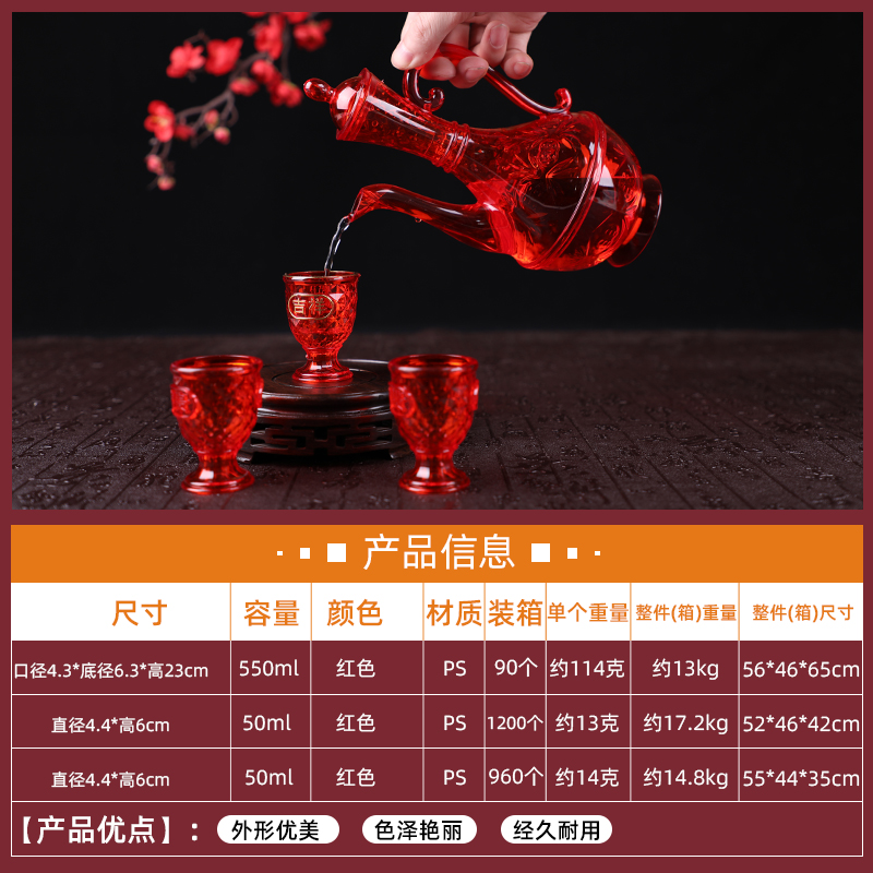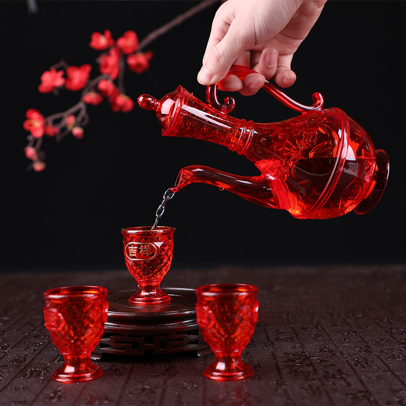 Liquor Wine Glass Wedding Celebration Red Plastic Wine Jug Toast Toast Wine Taverine Jug Wedding Dowry Wedding Dowry Wedding Dowry