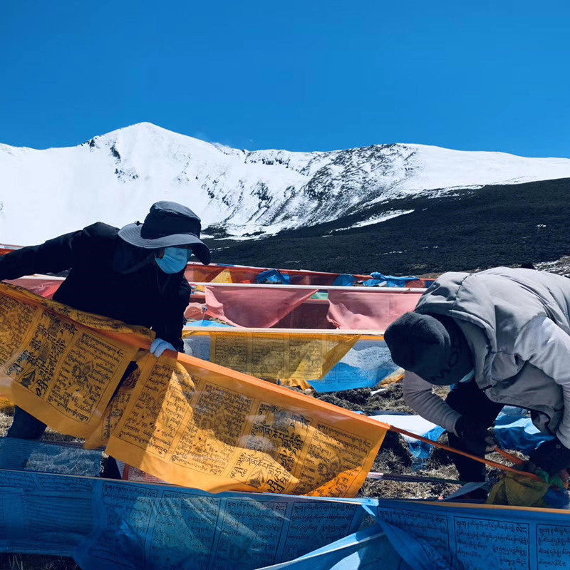 Tibetan auspicious prayer flag Silk cloth five-color flag Tibetan sutra flag Longda Fengma flag Mongolia 7 meters 20-sided scriptures Guanyin