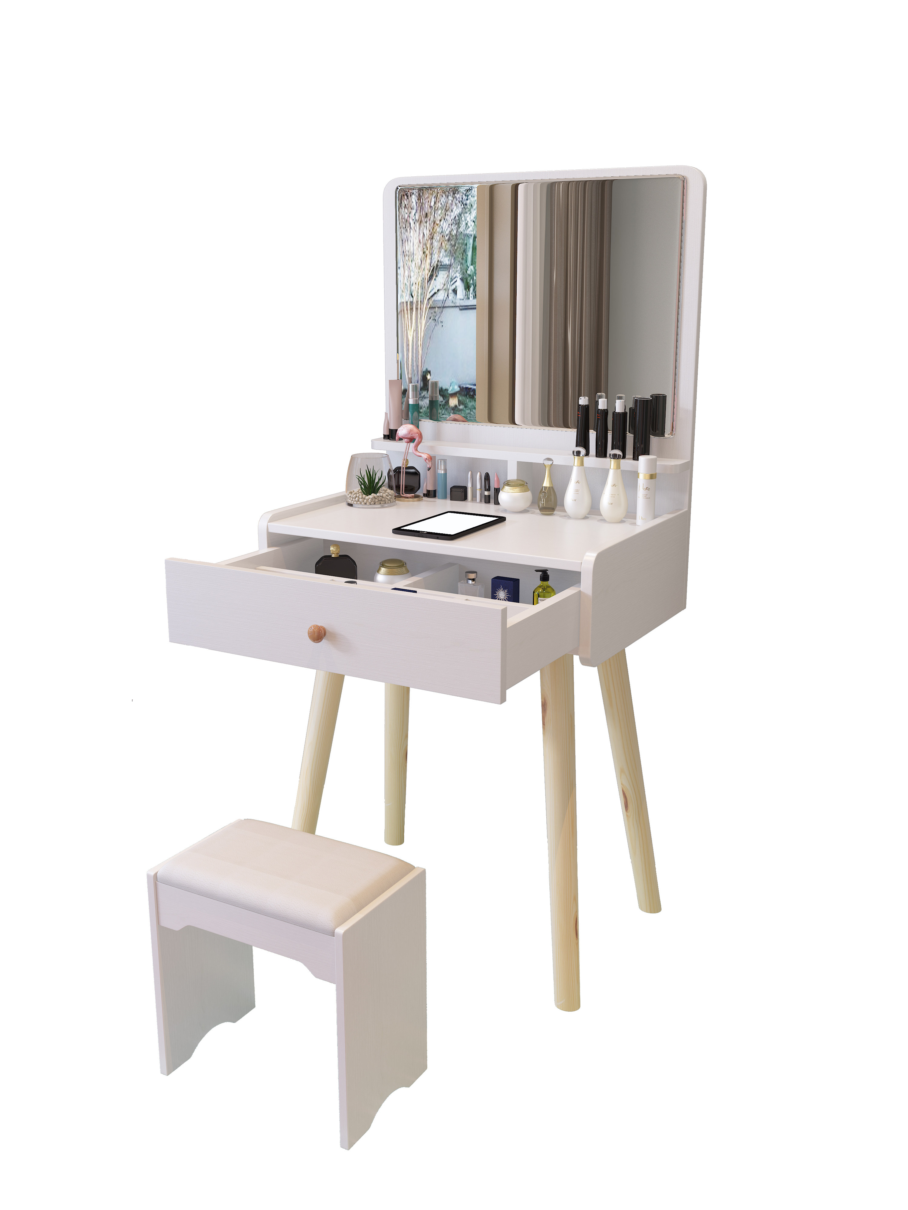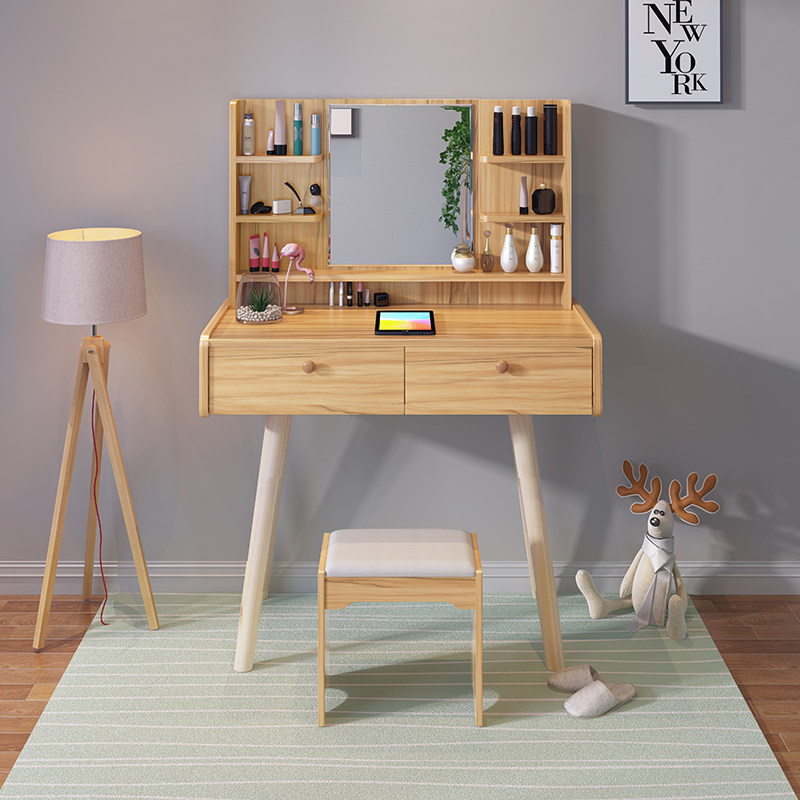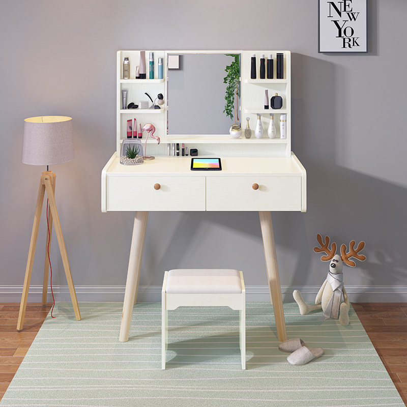 Modern minimalist bedroom small apartment ins mini light luxury dressing table princess solid wood dressing table integrated storage cabinet