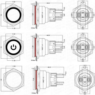 5-6V self-locking-red ● Flat head Ring Power lamp 5-6V self-locking-yellow ● Flat head Ring Power lamp 5-6V self-locking-blue ● Flat head Ring Power lamp 5-6V self-locking