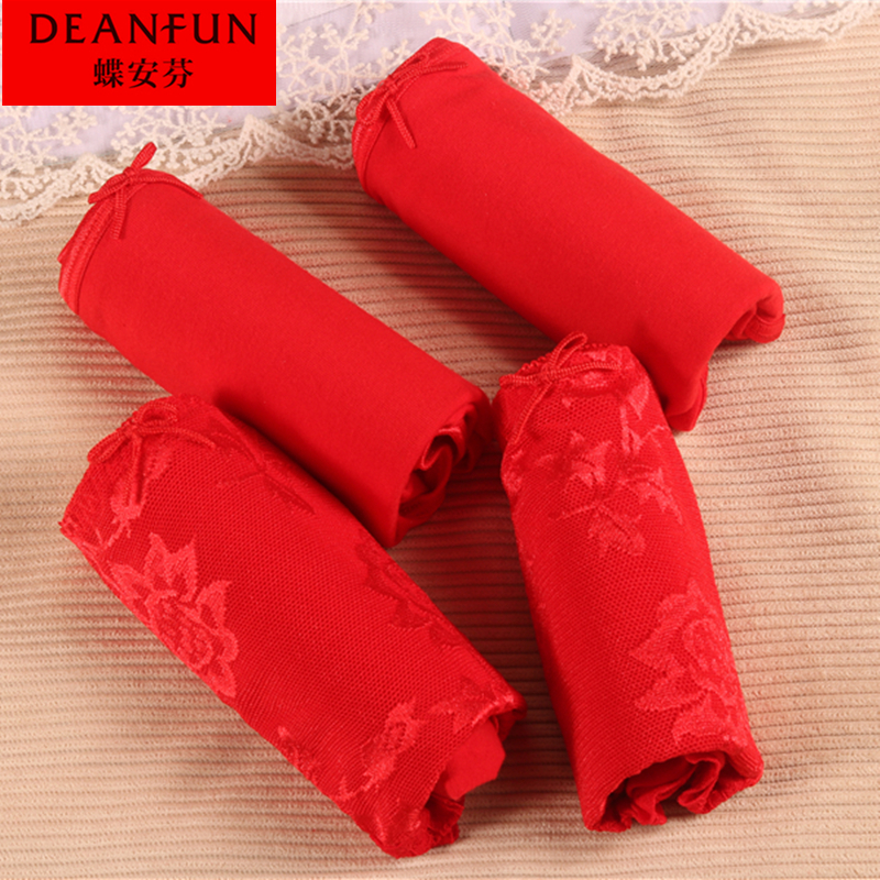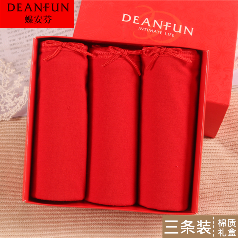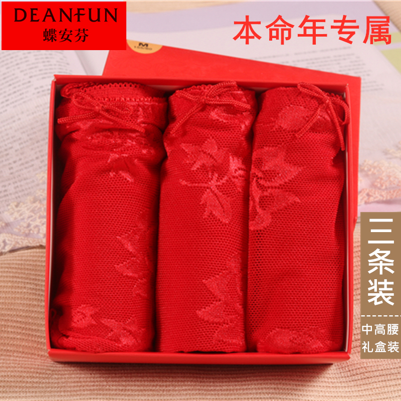 Dianfen Zheng red wedding festive year of life Lace pure cotton file high waist women's big red underwear gift box