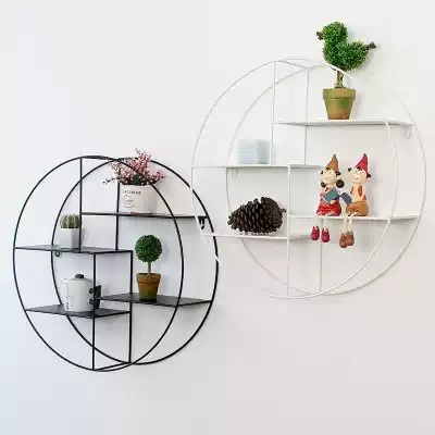 ins Nordic wrought iron shelf modern simple home living room wall hanging creative round wall storage shelf