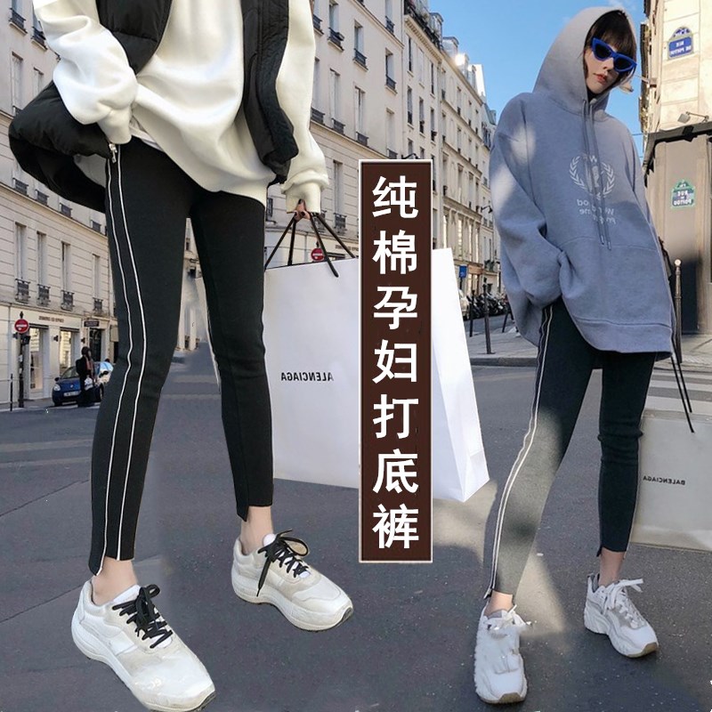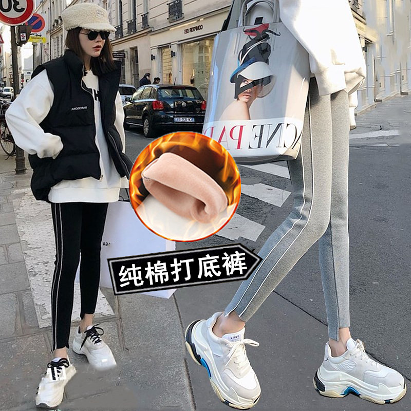 Pregnant women with velvet thickened inner pants 2019 autumn and winter new fashion trend mom's belly pants All-in-one thin casual pants