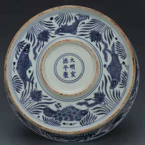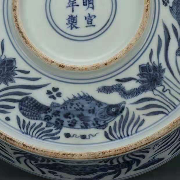 Grand Ming Xuande Qinghua Fish Grass Tattooed Pen Wash Antique Ancient Play collection Imitation Ancient Porcelain-Taobao