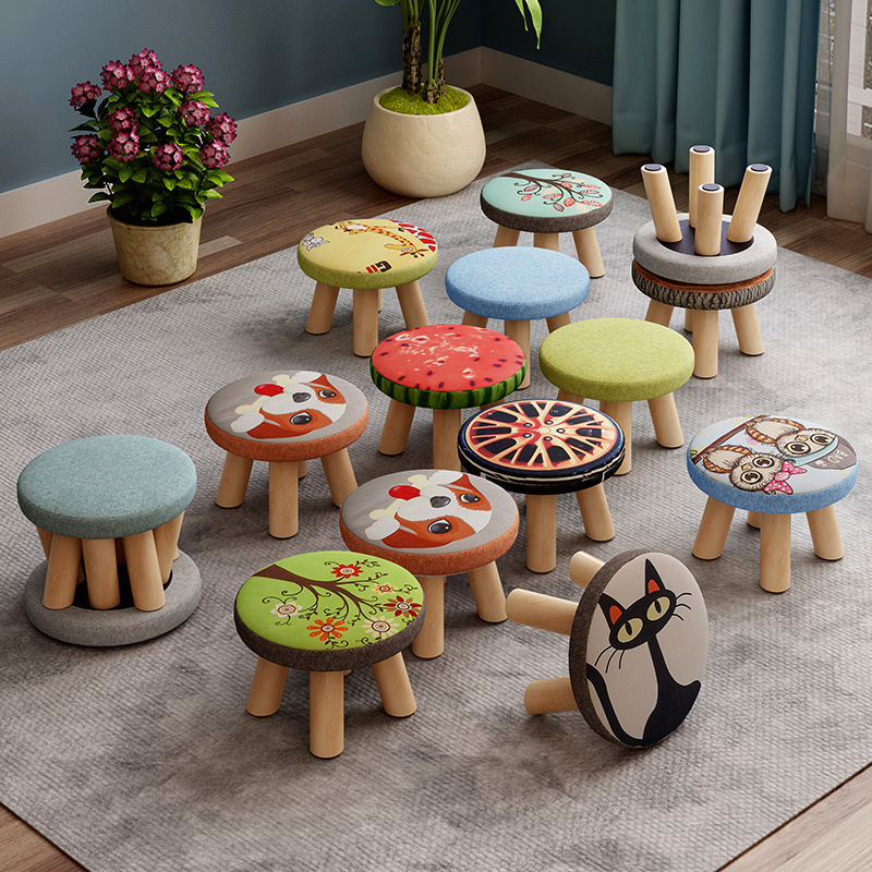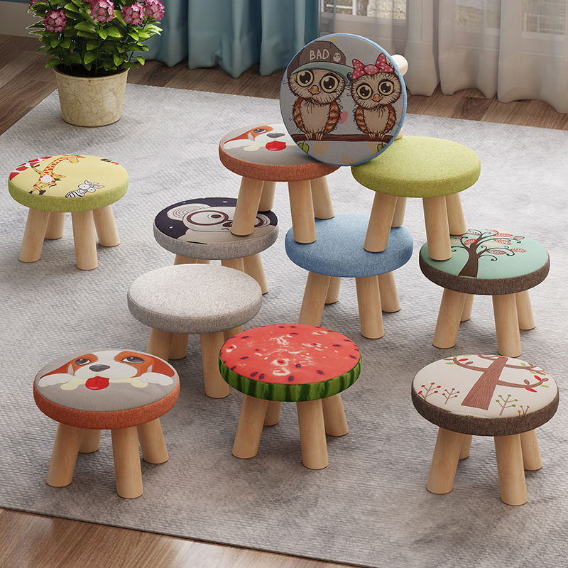 Small stool household solid wood low stool fashion round stool cute children's sofa stool chair cartoon creative small stool