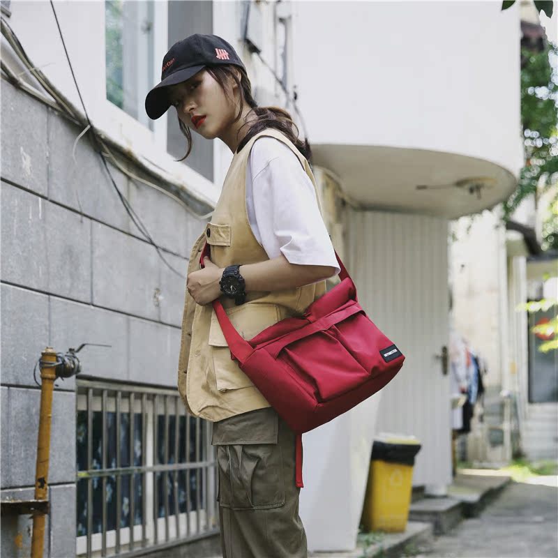 Tide-card Japan-ROK Skew Satchel Bag Men's Single Shoulder Bag Dead Fly Tooling Canvas Scapegoat Student Leisure Skew Cross Schoolgirl