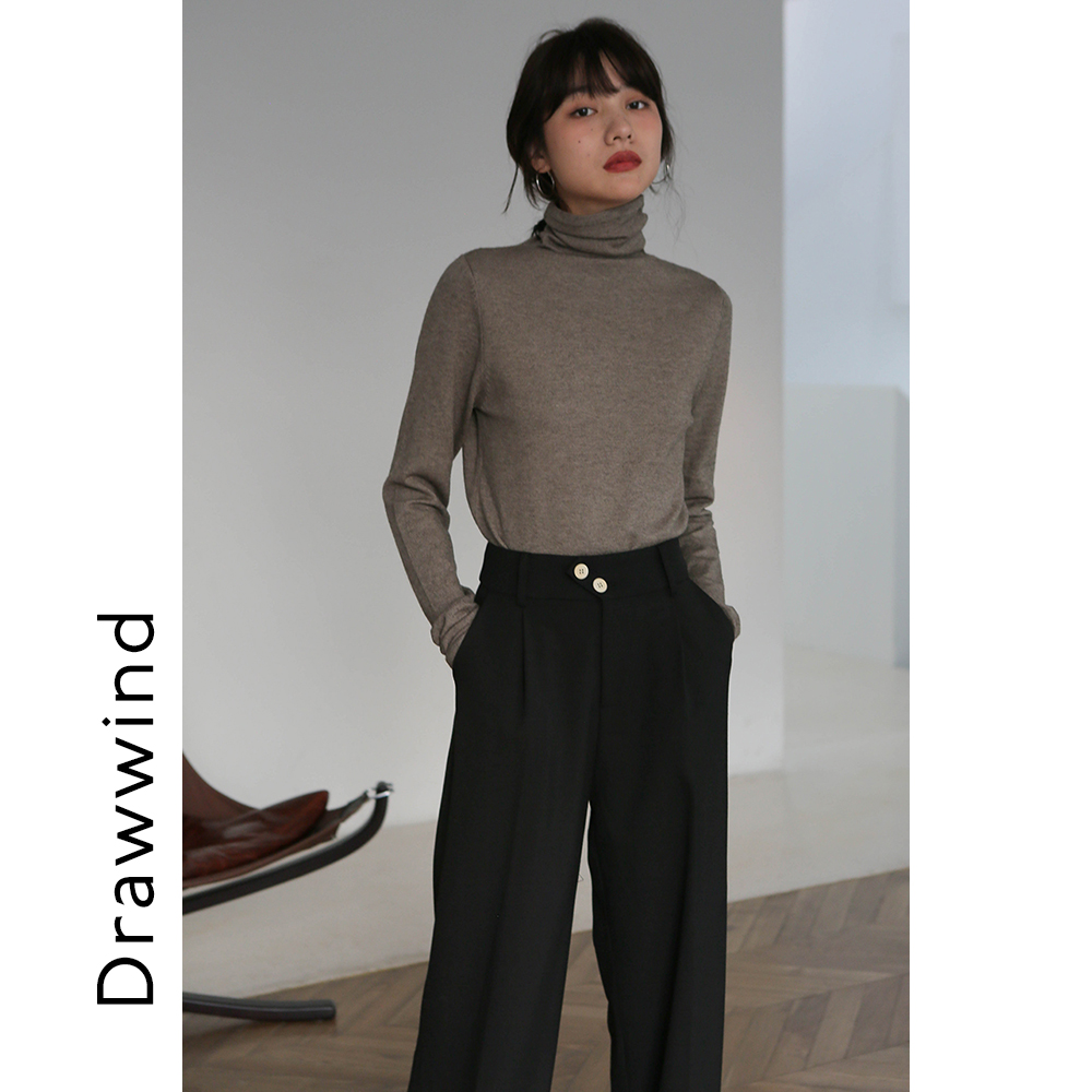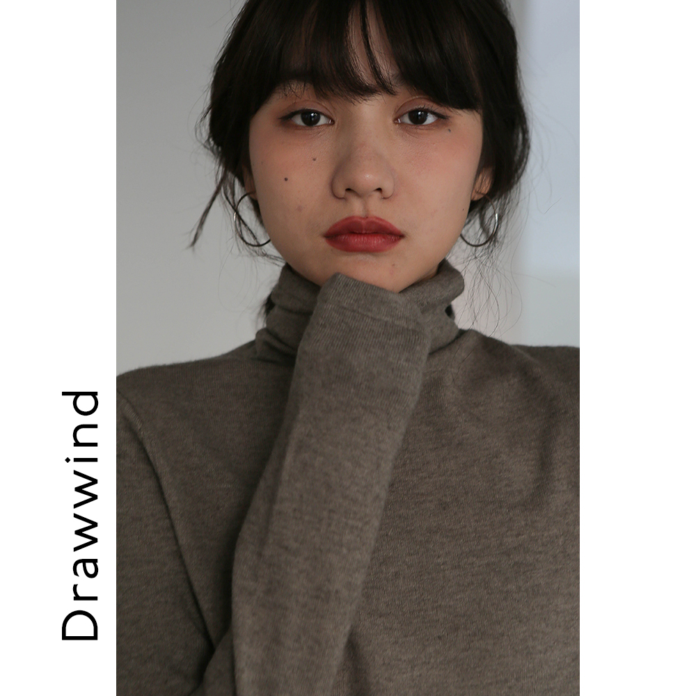 Painting style drawwind knitwear women's spring long sleeve inner dress with solid color pullover turtleneck knitted sweater women