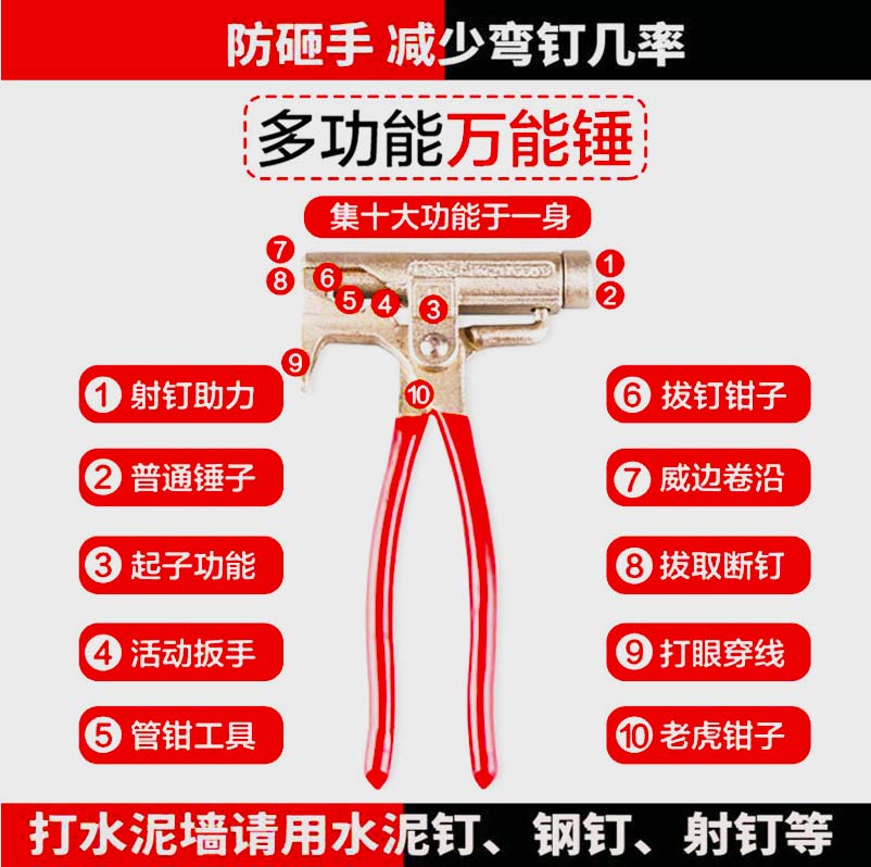 Opening multi-purpose universal hand wrench Hammer Multi-function all-in-one wall nail Cement nail artifact Special tool