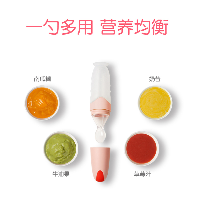 Baby rice milk spoon Bottle Baby food bowl Silicone extrusion rice flour spoon Feeding artifact Feeding tool