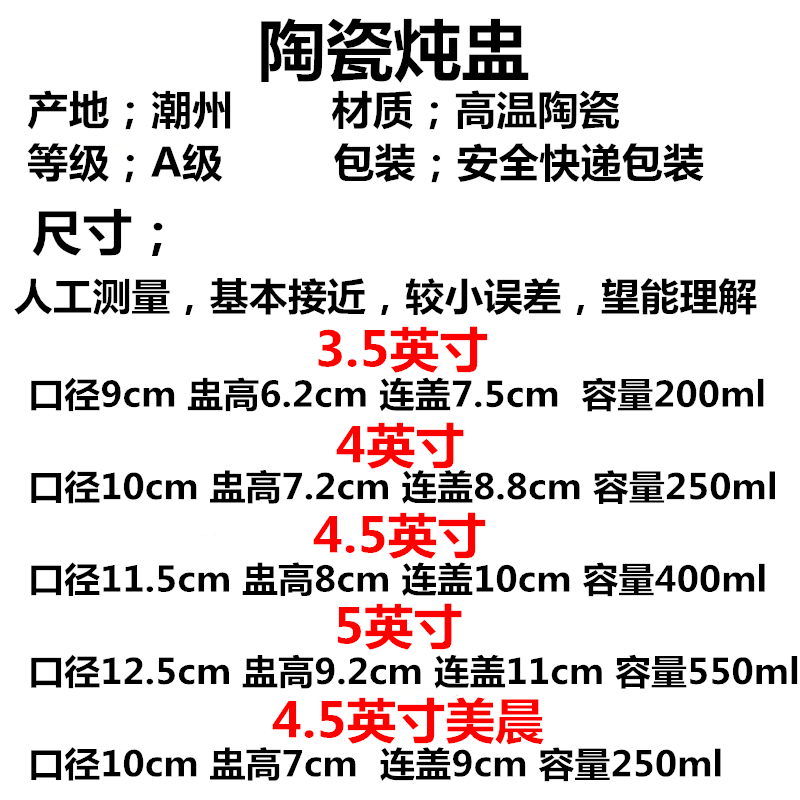 Full 9.9 yuan automatic 4-inch coverless 250ml 4-inch stewing pot 250ml soup spoon 4-inch stewing pot 250ml bottom plate soup spoon 4-inch Meichen stewing pot 250ml soup
