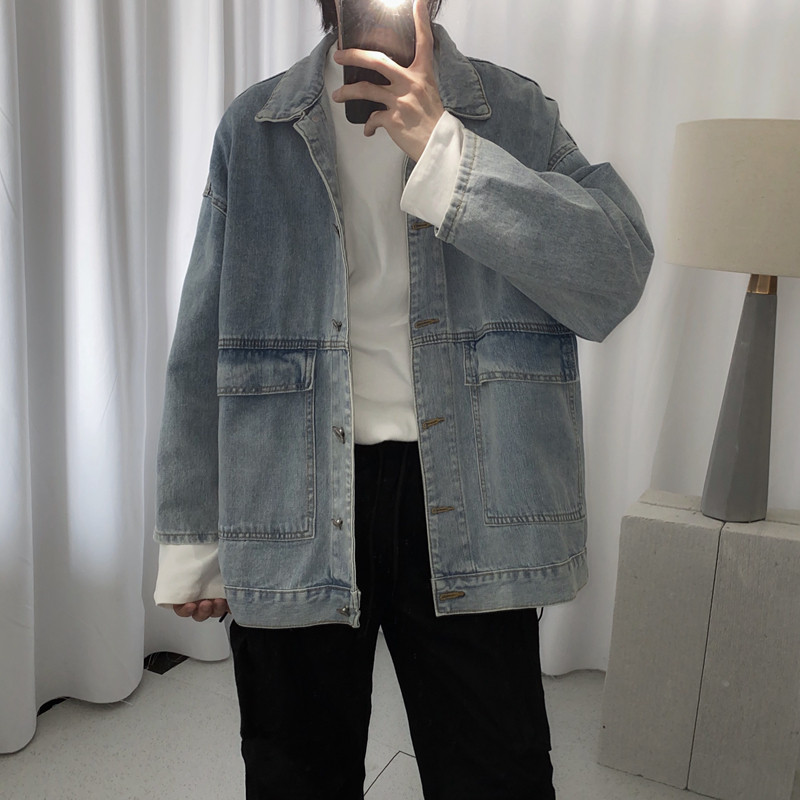 Mr Frock Blue denim jacket Male loose 2021 autumn Korean bf denim jacket top