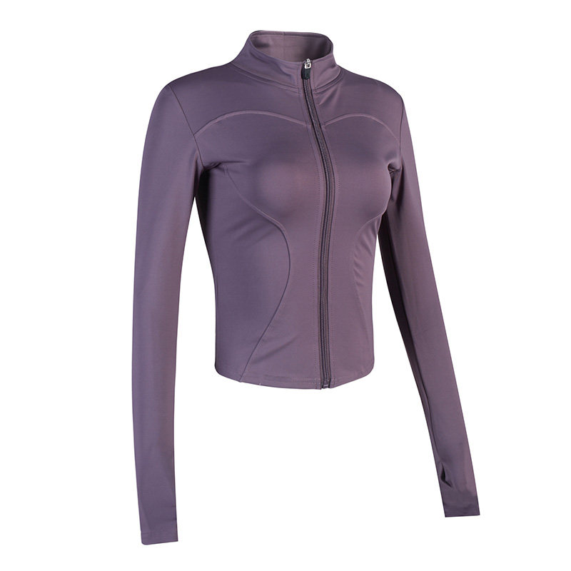 Upright Collar Laced Sports Jacket Woman Running Speed Dry Tight Fit Long Sleeves Elastic Thin Yoga Jacket Blouse