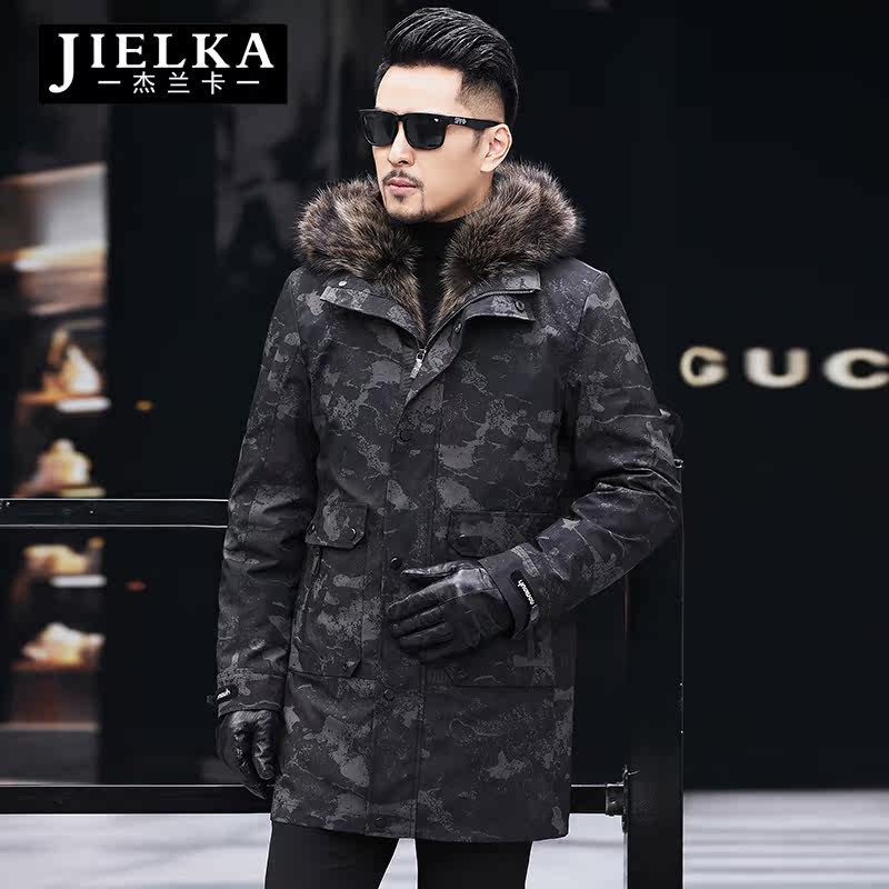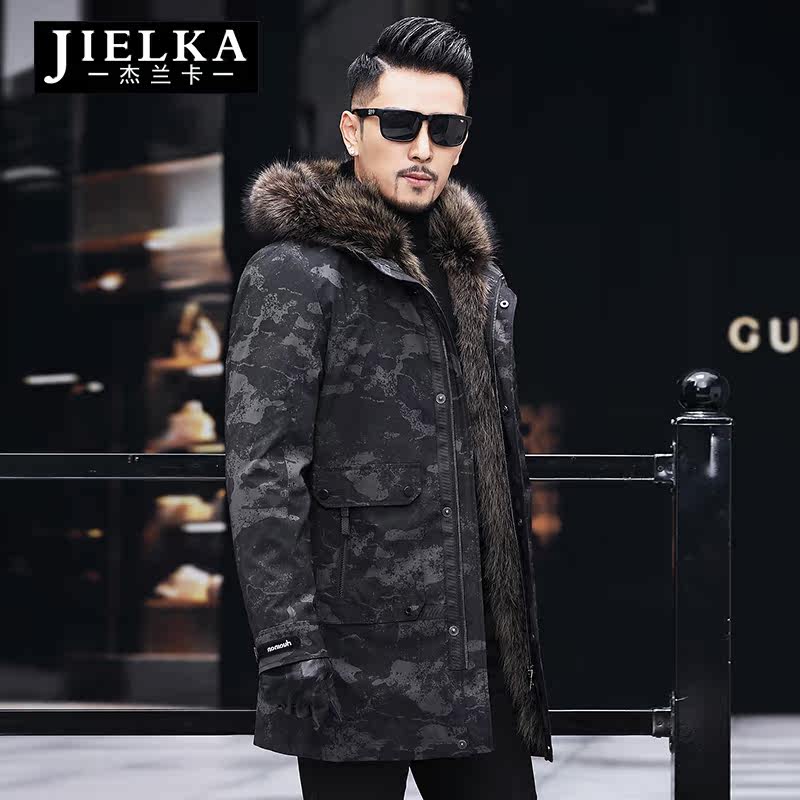 Heinin faction overcomes men's mid-length versions of even hat minke leather liner Pike king raccoon dog fur collar Pike coat men's coat