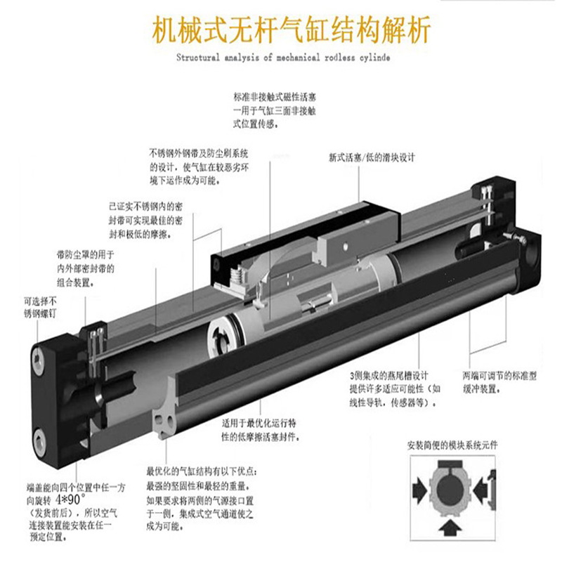 High-speed mechanical rodless cylinder OSP-P25-300-400-500 with guide rail long stroke large thrust spot