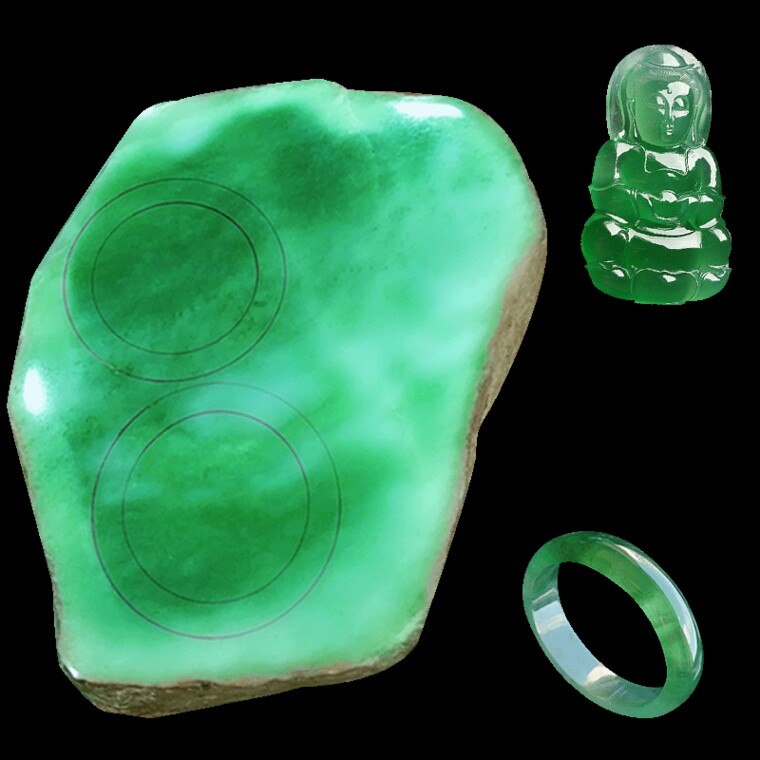 Small drill king natural emerald raw stone wool material Myanmar jade high ice seed color bracelet material semi-clear material