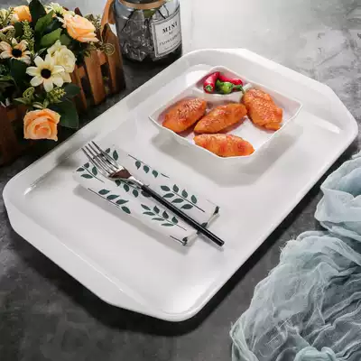 Melamine tray rectangular white commercial plastic fast food plate kindergarten dinner plate cake bread display tray