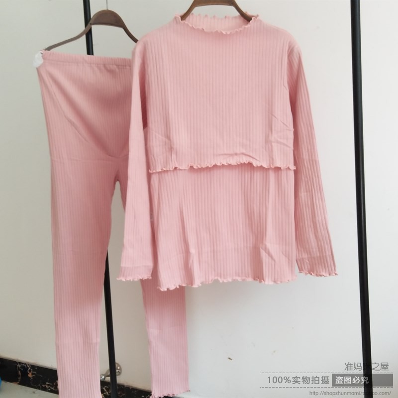 Add fat to increase loose pregnant women's autumn clothing sanitary pants set cotton nursing clothing pregnant women's high collar heating clothing nursing clothing