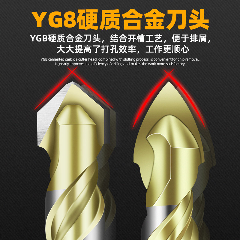 Tile drilling drill bit multi-functional alloy super hard triangle drill bit concrete cement wall all-ceramic tile drill bit