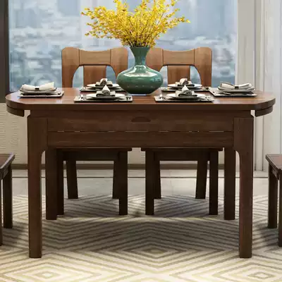 Walnut all solid wood dining table and chair combination new Chinese dining table modern simple telescopic folding square dining table dining room