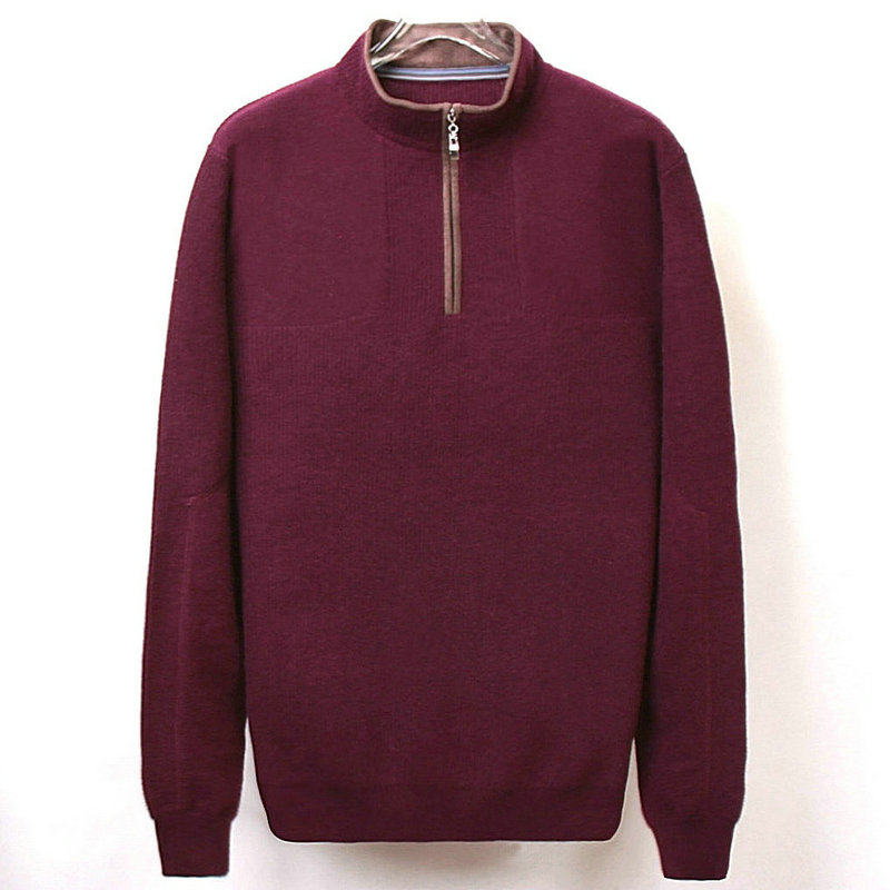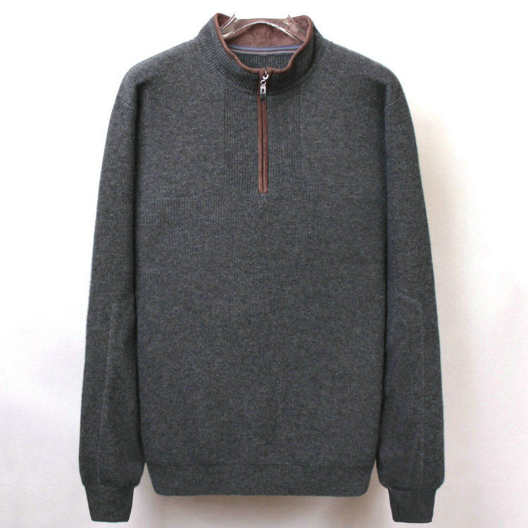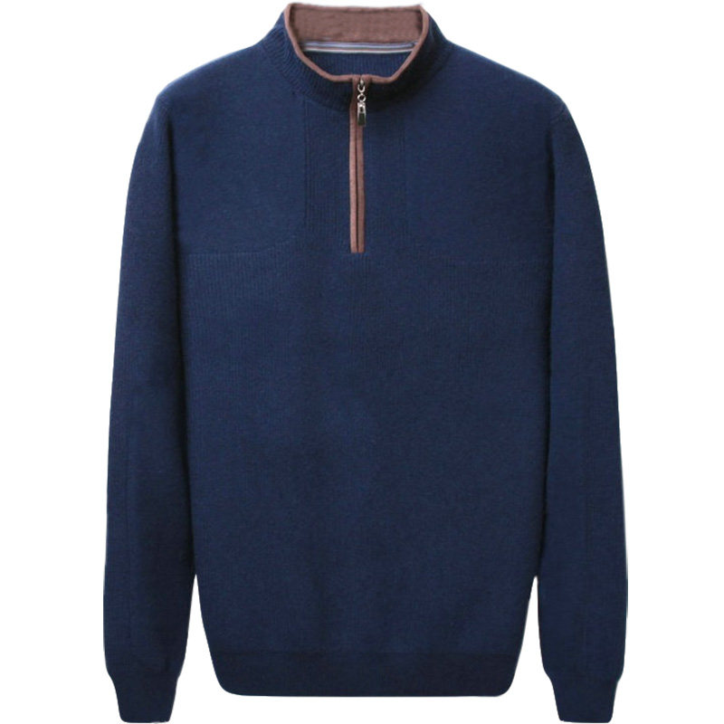 Autumn and winter men's thickened cashmere sweater middle-aged and young flocking solid color zipper half turtleneck pullover long-sleeved knitted sweater