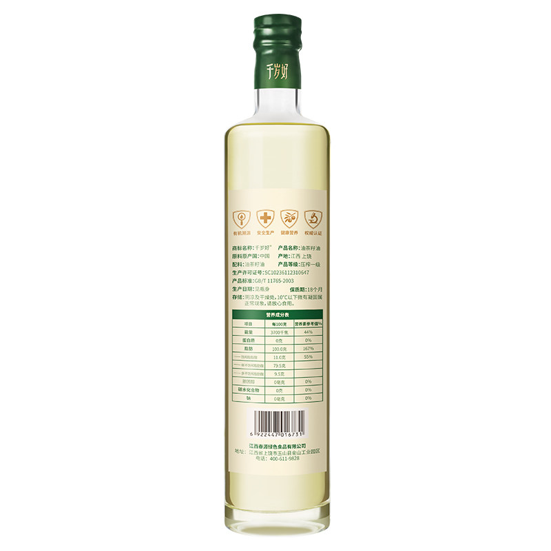 Chitose Good Organic Camellia Seed Oil 750ml*12 Bottles Boxed Physically Pressed Jiangxi Tea Oil Plant Edible Oil