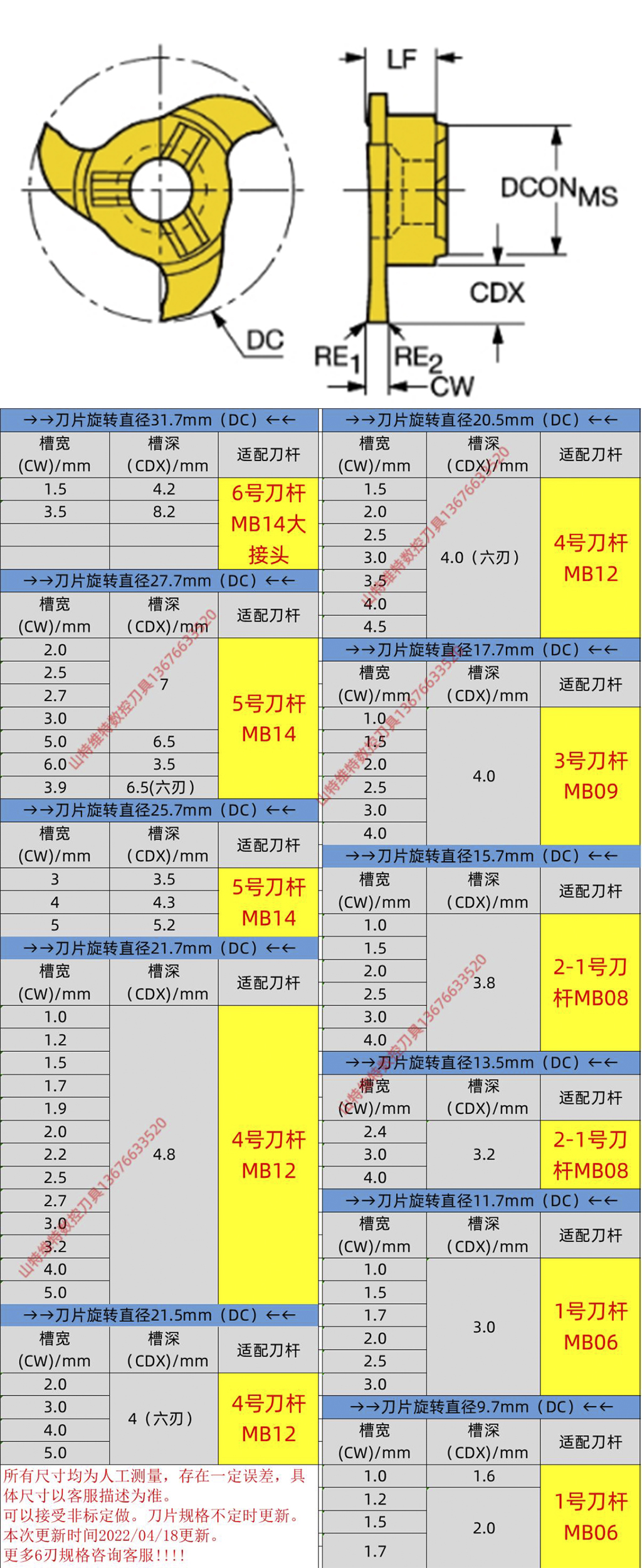 5-10 slot width 2 4 slot depth 6 5 MB14 six blade minimum machining of 28MM