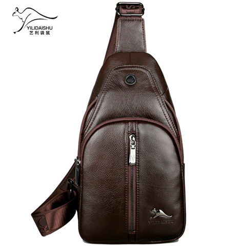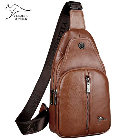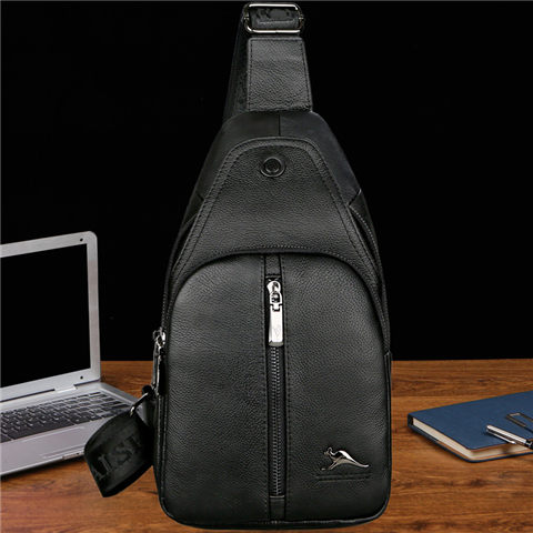 Yili Kangaroo Leather Chest Bag Men's Casual Men's One Shoulder Messenger Bag Top Layer Cowhide Fashion Sports Chest Bag