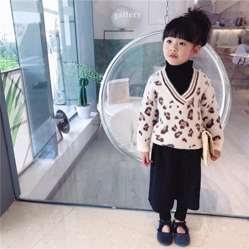 Girls turtleneck sweater Winter Korean children's baby Western style BAO WENV collar top fake two pieces of mink knitted sweater