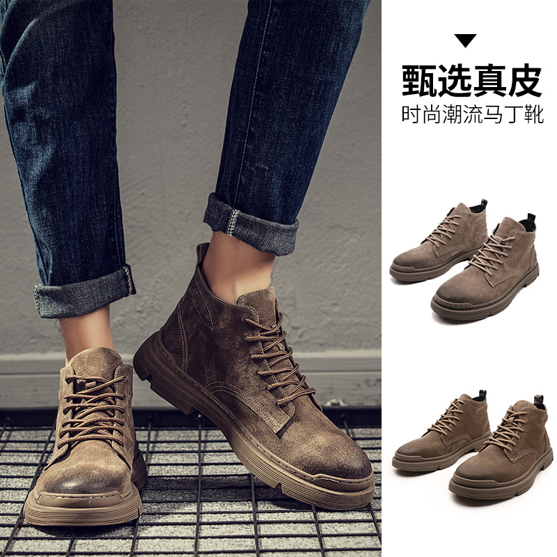 Martin boots men's autumn and winter leather British work shoes heightening shoes retro high tide war wolf boots British style boots men's shoes