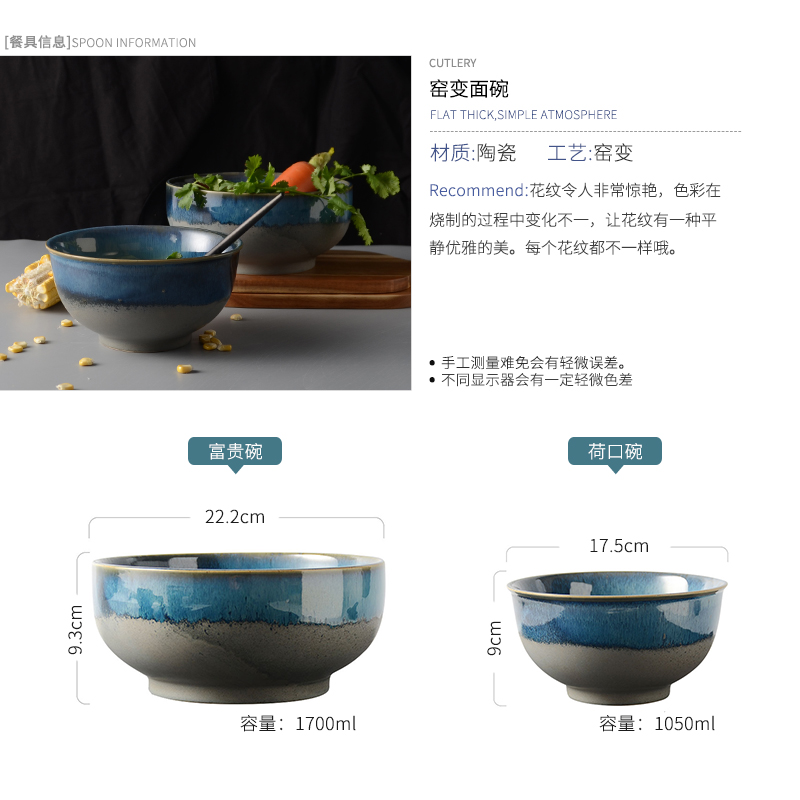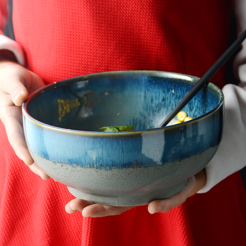 Multi-beauty creative kilns Noodle Bowl Fruit Salad Bowl Retro American Large Soup Bowl Foam Noodle Bowl Home ceramic cutlery