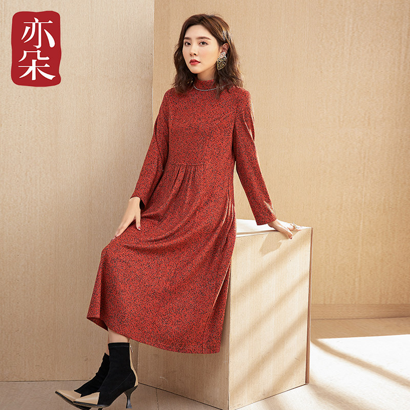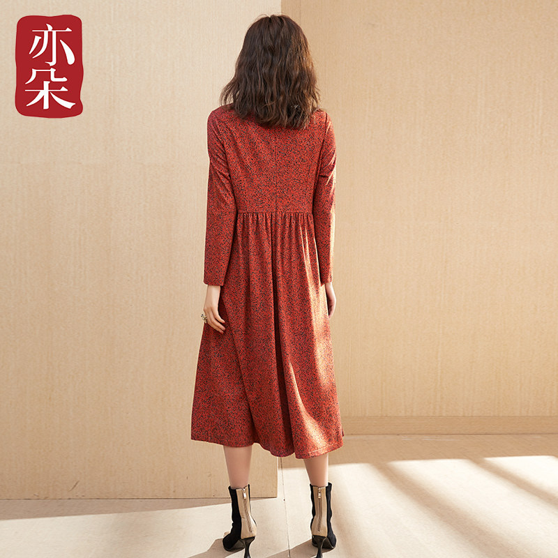 Also 2022 new dress women's small long round neck chain printing fashion spring and autumn long sleeve skirt