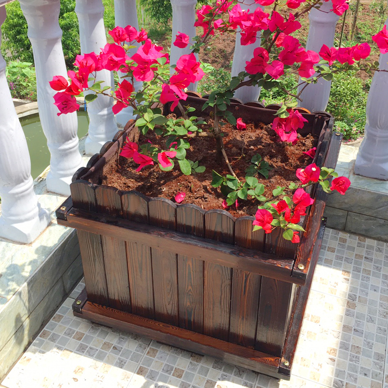 Anticorrosive wood flower box outdoor courtyard rectangular planting box household outdoor balcony flowerpot large carbonized wood flower trough