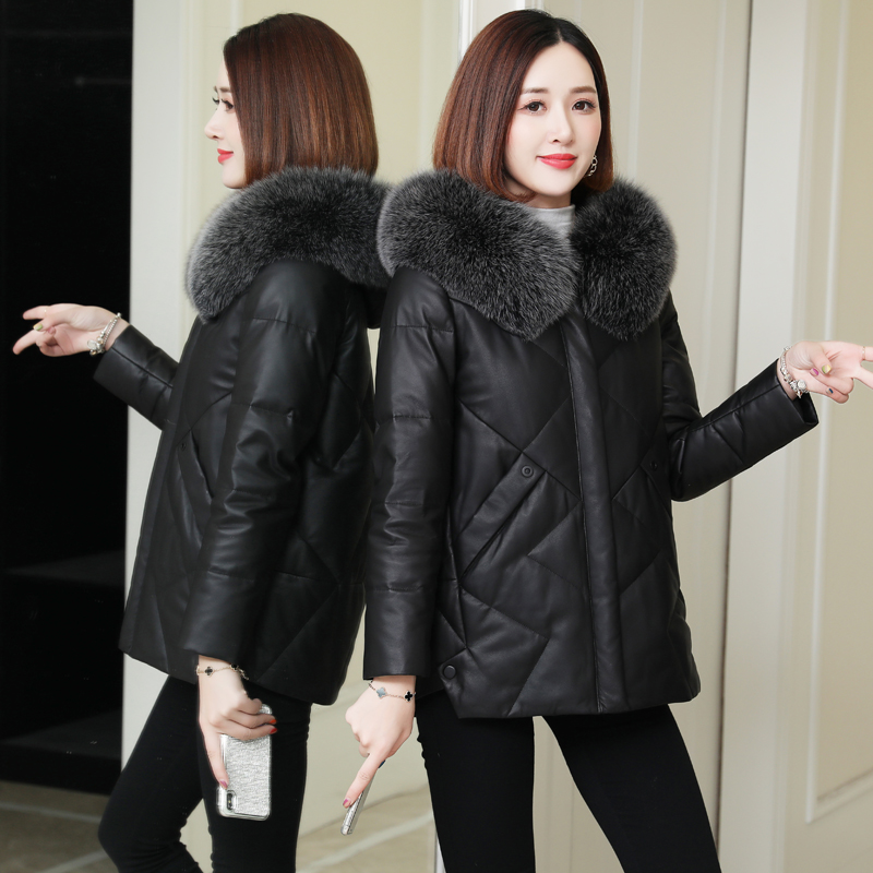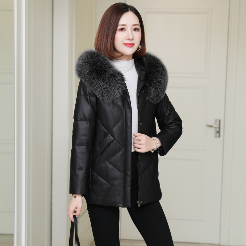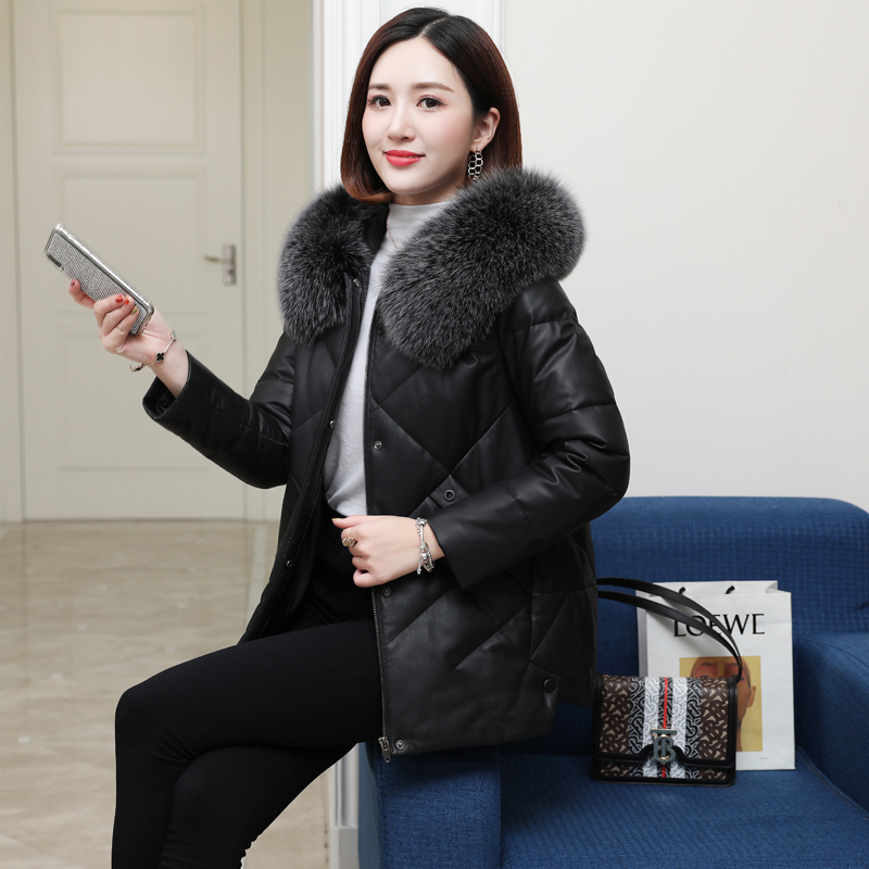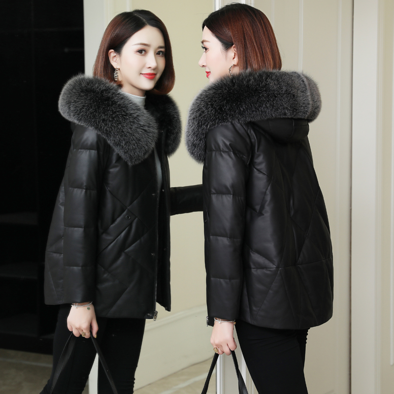 Henning leather clothes woman genuine leather down jacket short 2021 new even cap plus suede thickened mother sheep fur coat