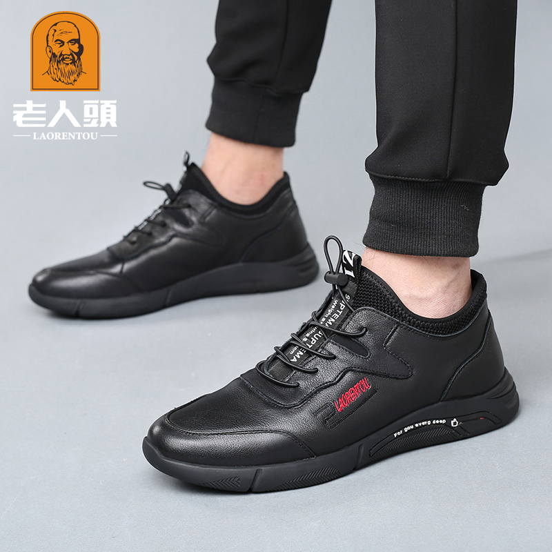 Old man's head shoes 2022 Summer wave shoes genuine leather Inlan casual leather shoes Korean version 100 lap lace Young sneakers