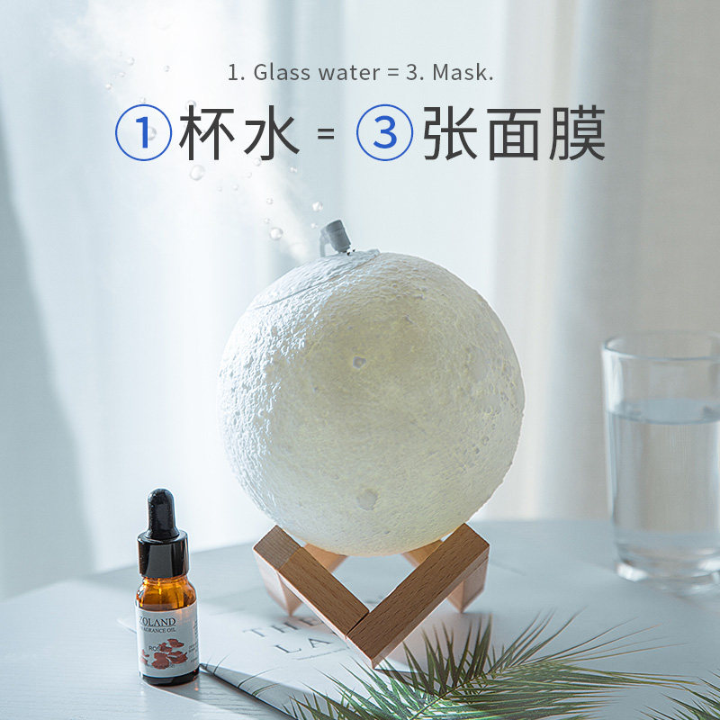 Moon humidifier Dormitory bed student silent bedroom Home office desktop air purification aromatherapy machine Small cute essential oil large capacity spray moisturizing Creative Birthday gift Night light
